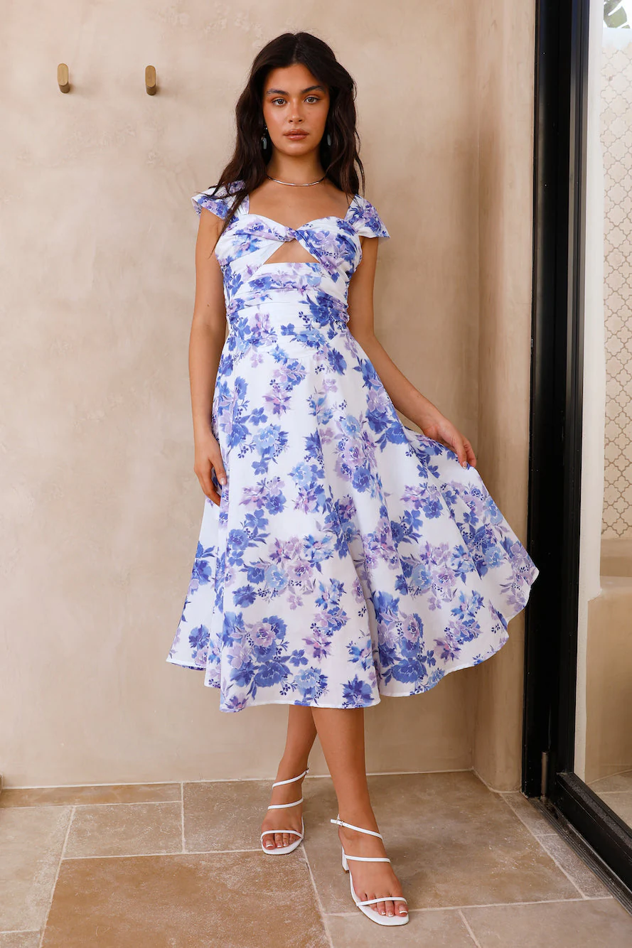 Alba Frill Trim Midi Dress White